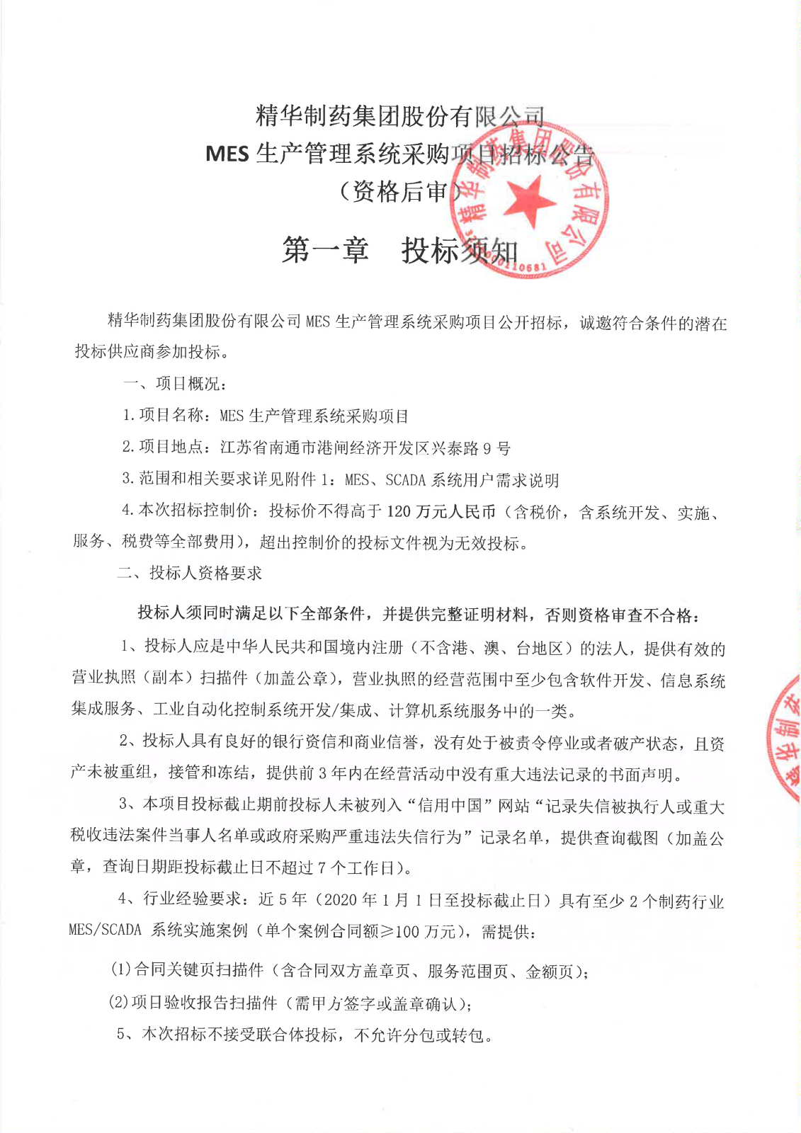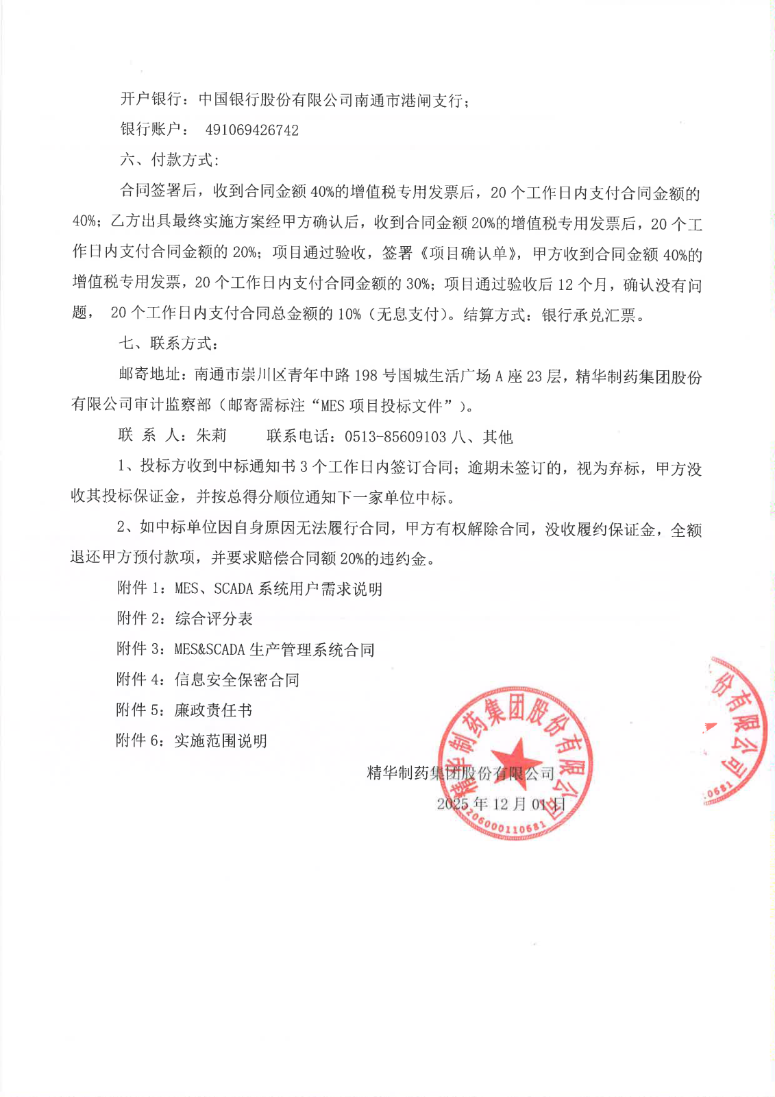 关于MES招标材料,详见附件: