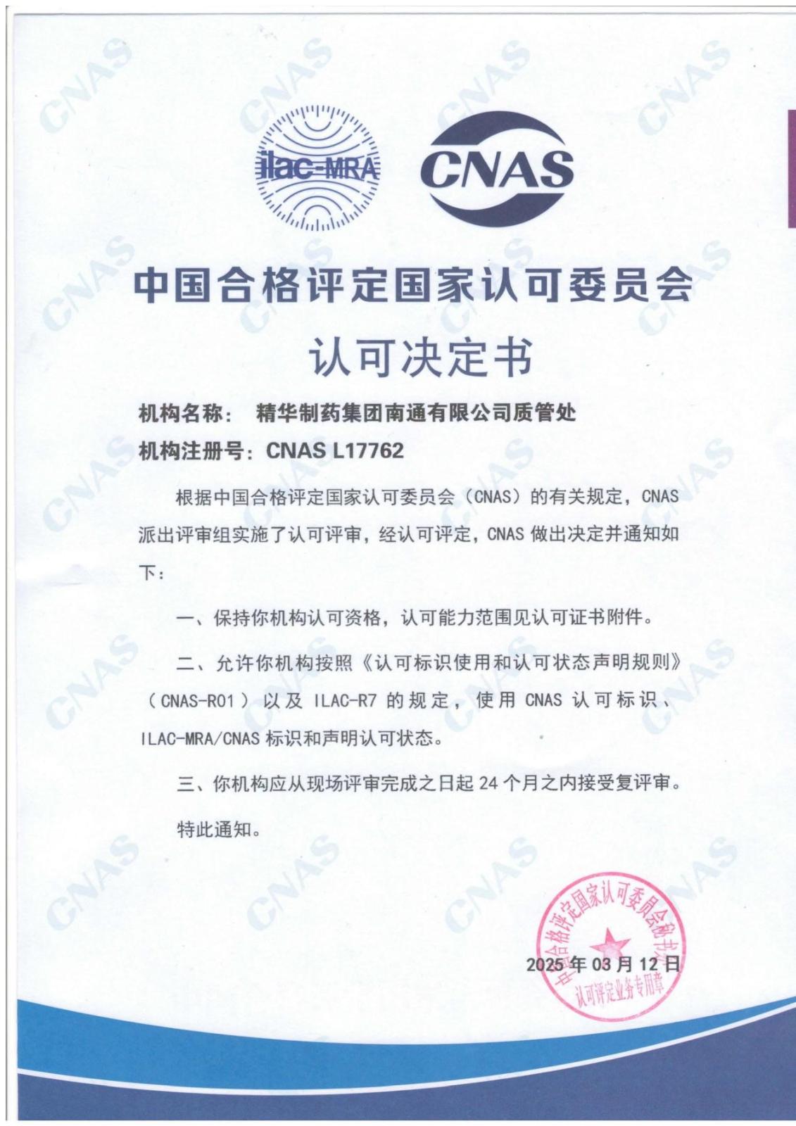 精华制药集团南通有限公司检测中心,作为企业内部的重要技术支撑部门,致力于提供一流的质量检测和评估服务,肩负“质量安全守护者”与“医药创新推动者”的双重使命。2025 年3 月高标准通过 CNAS 监督评审,持续保有国家认可资质;11 月参与中国食品药品检定研究院能力验证,…